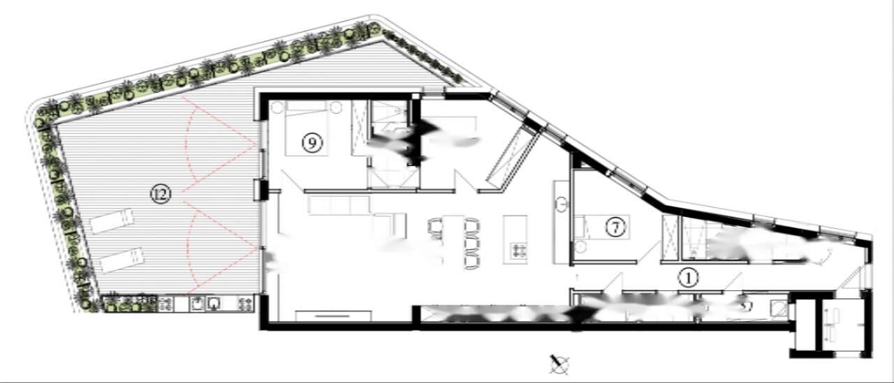 Апартамент предлагает просторную зону отдыха, в которой объединены кухня, столовая и гостиная с выходом на террасу через широкие стеклянные двери. Также здесь имеются три спальни, две ванные комнаты и другие удобства: техническое помещение, отдельный туалет и кладовая. Комфорт в квартире достигается благодаря трёхслойным стеклопакетам, экранным шторам, систему подогрева пола, многозональной системе охлаждения и центральной вентиляции. Энергоэффективный фасад гарантирует минимальные расходы на эксплуатацию.