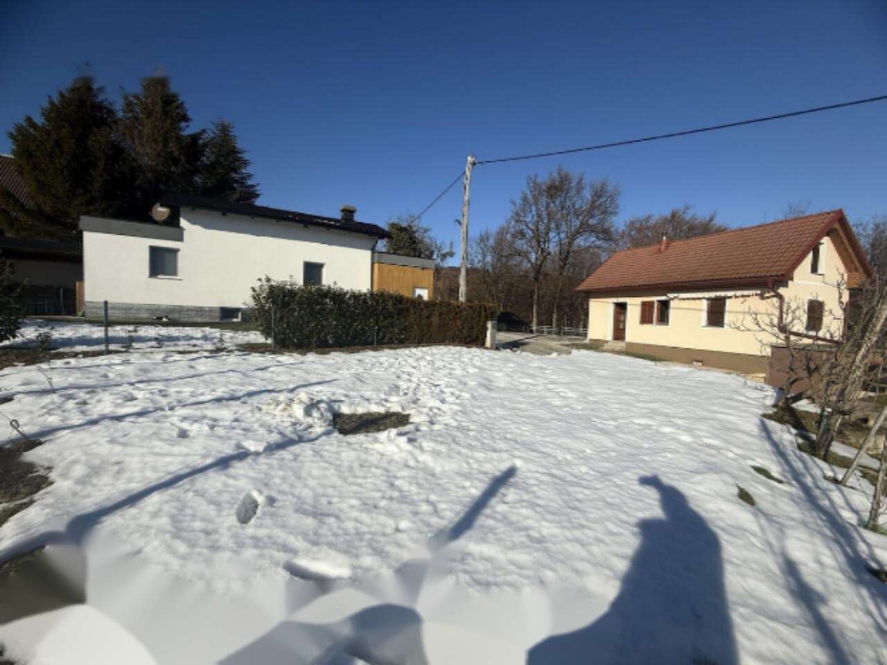 Большая часть участка предназначена для строительства, предоставляя возможность устроить сад, террасу или иные открытые площадки. Дом выполнен из кирпича, крыша обновлена черепицей, что гарантирует прочность и надёжную защиту. Имеется подключение к водоснабжению и электричеству, а также оптический интернет. Отопление организовано на твёрдотопливной основе, что обеспечивает уют в зимние месяцы.