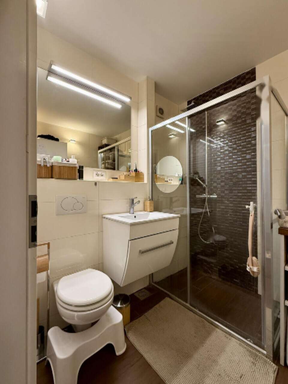 К квартире прилагается подвальное помещение и общая парковка для велосипедов. В 2015 году проведена полная реновация, а в 2025 штат кондиционеров пополнен двумя внутренними блоками, установлен моторизованный балконный жалюзи — обоими можно управлять через мобильное приложение.