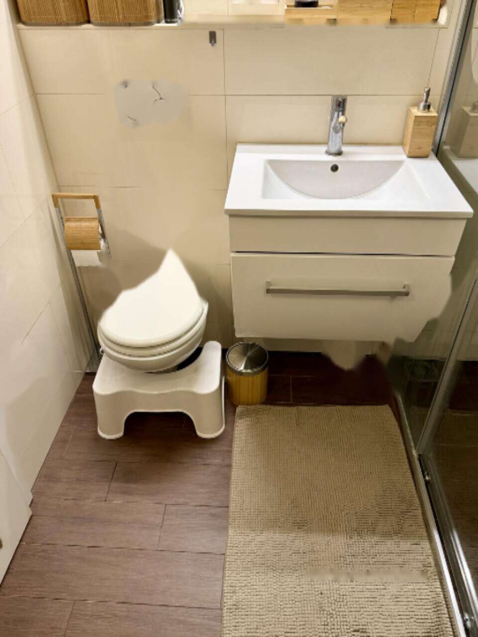 - объединённый санузел с душевой, умывальником и встроенным унитазом;