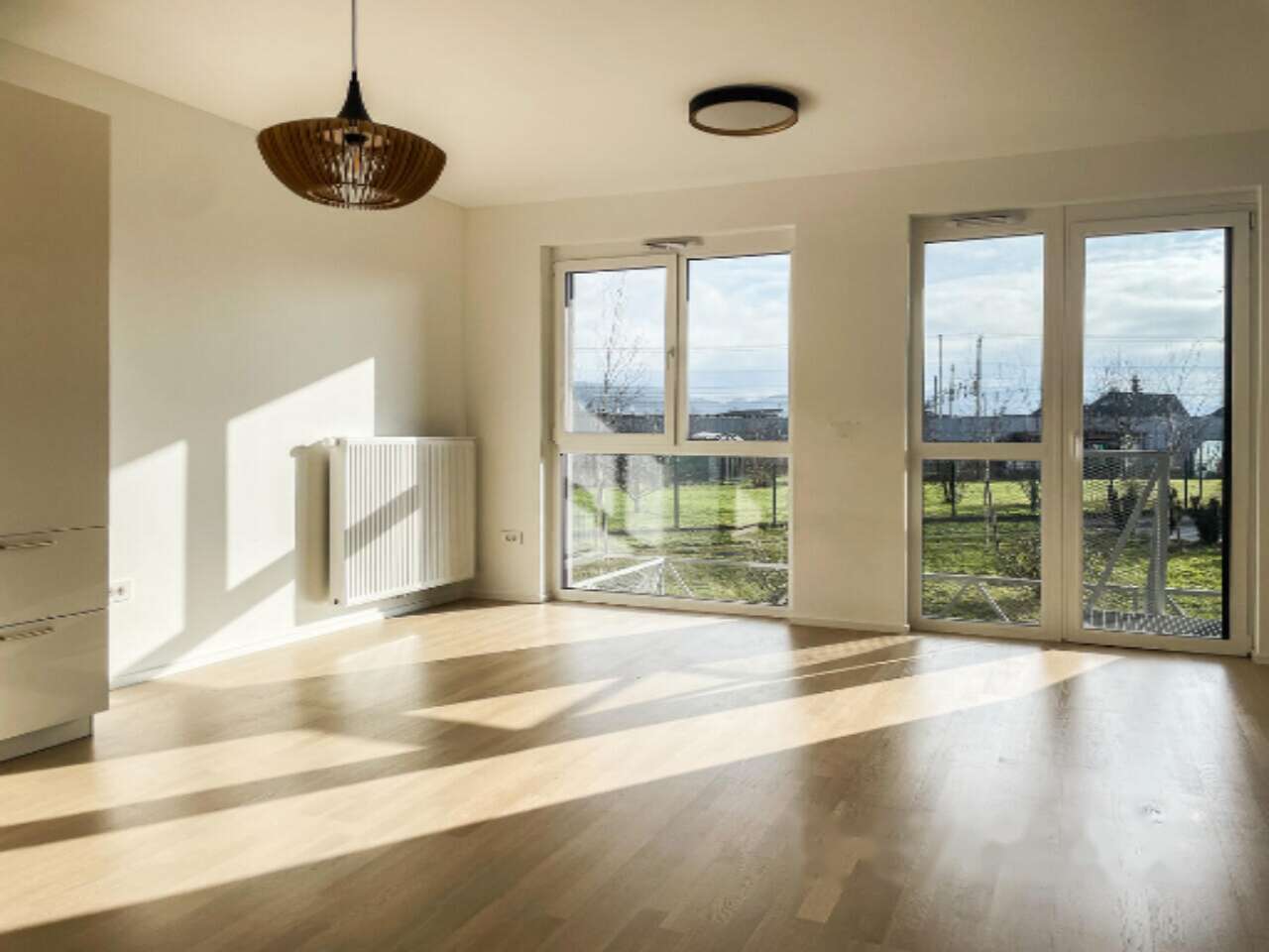 Инфраструктура вокруг впечатляет: рядом находятся детский сад, школа, магазины, аптека, библиотека и спортивный комплекс. Удобство передвижения обеспечивается доступностью автобусной и железнодорожной станций поблизости, а также быстрым дорожным сообщением с центром города, что делает это место замечательным выбором для повседневной жизни.