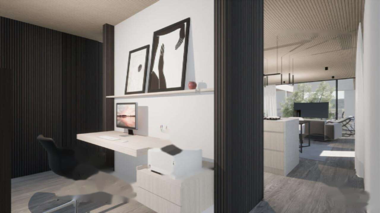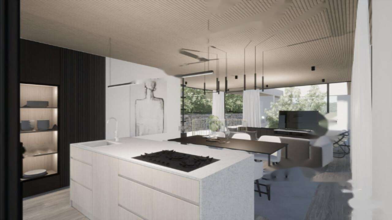 Жилая площадь дома составляет 222 м², а участок занимает 713 м². В подвале вас ждёт велнес-зона с турецкой и финской саунами, джакузи и технические помещения. На первом этаже расположены главная спальня, две дополнительные спальни с выходом на террасу, кабинет и уютная гостиная, объединённая с кухней и обеденной зоной. Большие стеклянные перегородки не только открывают потрясающие виды, но и щедро наполняют комнаты естественным светом. Из дома можно выйти на обширную крытую террасу с перголой и персональным бассейном.