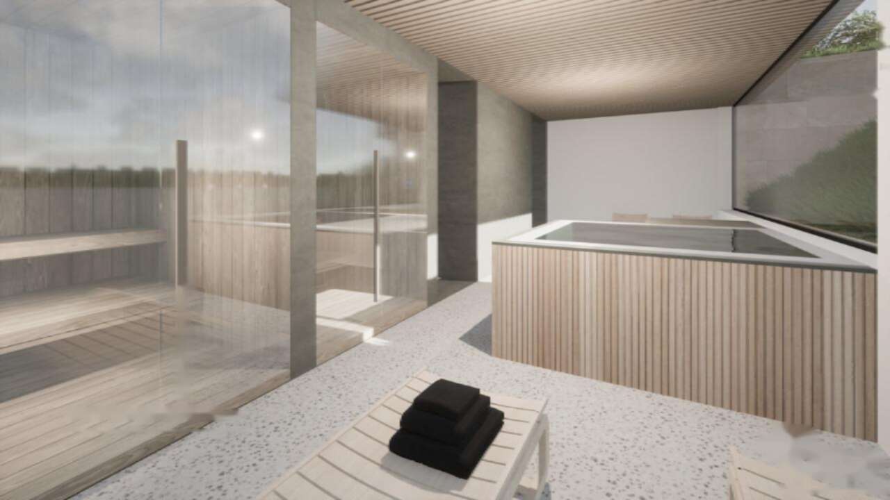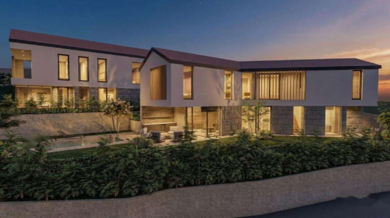 Экстерьер здания выделяется белым фасадом с деревянными вставками и элементами из местного камня, создающими теплый антураж. Двускатная крыша с легким уклоном придает вилле особую привлекательность. Из дополнительных удобств: гараж на две машины и частный бассейн площадью 18 м².