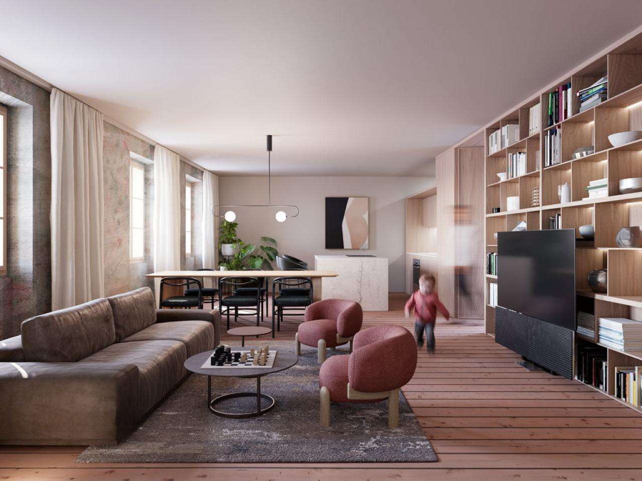 Квартира располагается на первом этаже трехэтажного дома с лифтом и занимает площадь 106,76 м². Завершение работ по обновлению запланировано на 2026 год, при этом будут использованы современные технологии и высококачественные материалы, сохраняющие культурную и архитектурную ценность строения.