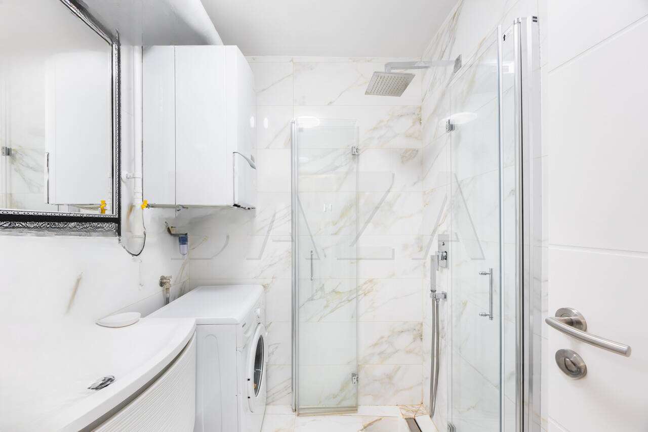 В квартире установлена вся необходимая мебель и техника, а встроенные элементы обсуждаются отдельно. Обогрев производится от индивидуального газового котла с помощью радиаторов, а система кондиционирования бережно поддерживает прохладу. В ванне и прихожей появились новые полы и оборудование, первоклассные окна и двери были заменены во время капитального ремонта. Фасад здания также привели в порядок в 2024 году.