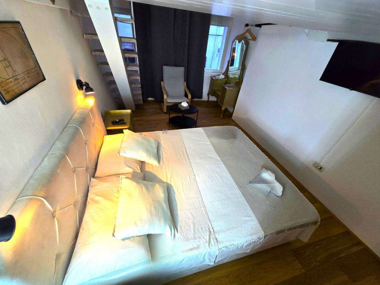 Квартира площадью 35 м² находится на втором этаже здания, созданного в 1570 году и полностью обновленного в 2025. В ходе реконструкции была проведена новая электропроводка, обновлена сантехника, заменены полы, улучшена изоляция, установлены новые окна, а также обновлена ванная комната и вся внутренняя мебель. Планировка пространства оптимально использует его, создавая уютные условия для проживания в одиночку или в паре.
