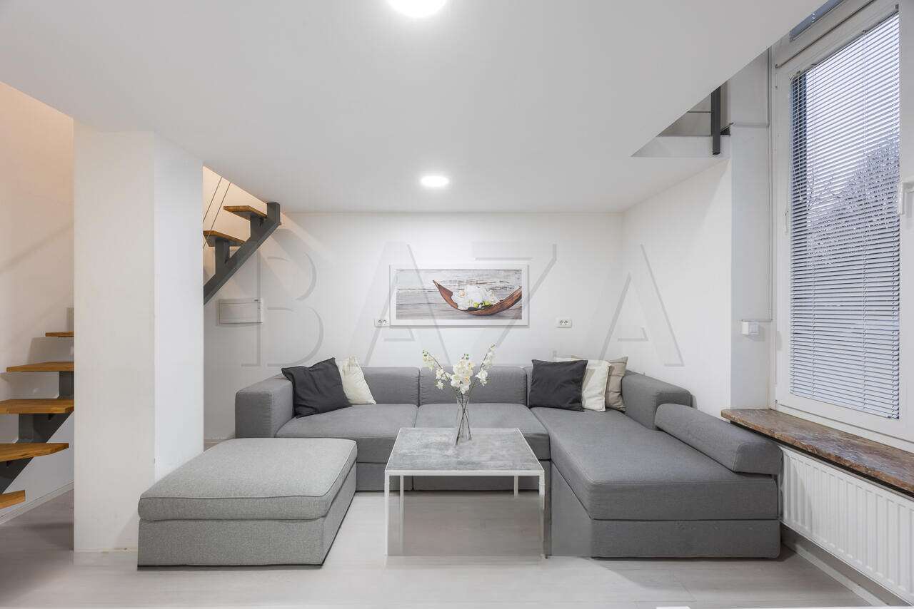 Эргономичное планирование включает открытое пространство 29,7 м² с кухней и обеденной зоной, светлую гостиную, ванную с душевой кабиной и уголком для стиральной и сушильной машины. Спальня 10,4 м² находится на галерее, там же оборудован рабочий уголок. Новая бытовая техника на кухне включает холодильник, плиту и микроволновую печь.