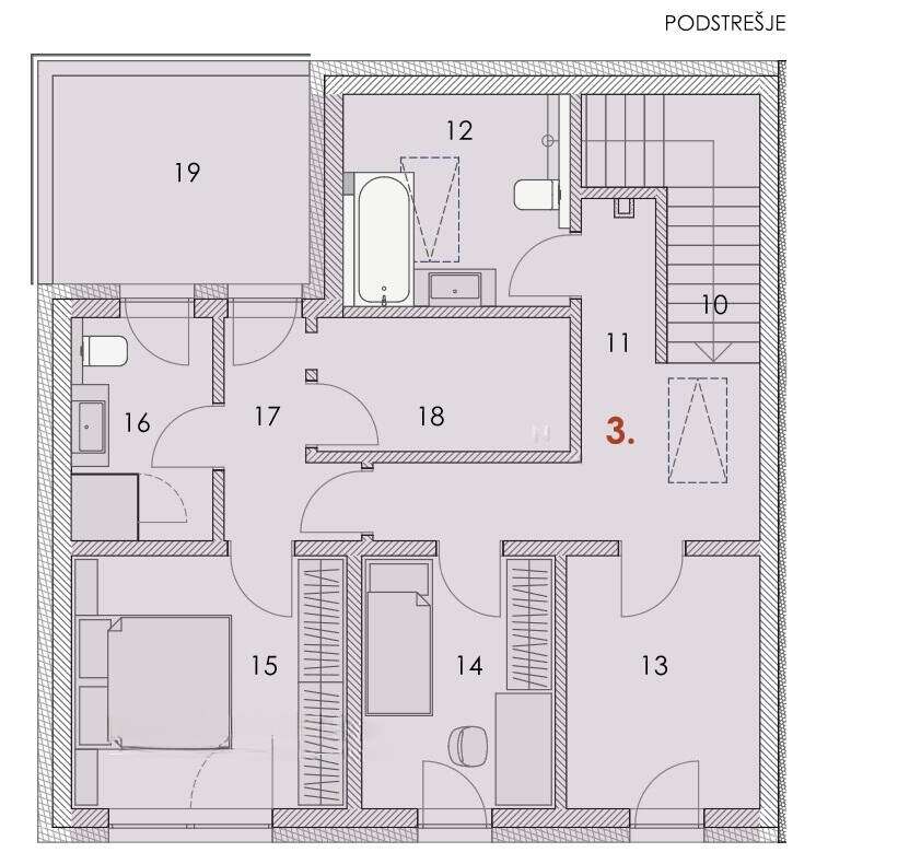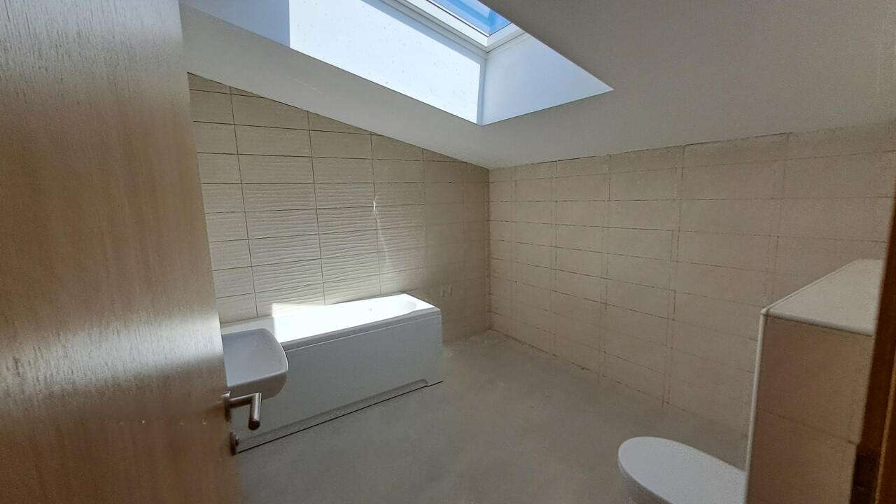 Квартира занимает первый этаж двухквартирного здания и предоставляет удобную планировку - просторное жилое пространство в форме L объединяет кухню, столовую и гостиную. Здесь также есть гостевой туалет и техническое помещение. Из кухни и столовой ведет выход на просторную террасу с кладовой. На втором этаже расположены спальни, две ванные комнаты и уединенная небольшая терраса, а мансарда впечатляет своими высокими скатными потолками.