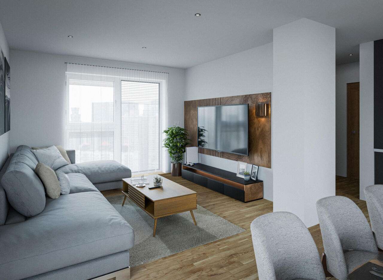 Общая площадь квартиры составляет 166,4 м², что подчеркивается обилием естественного света благодаря обширным стеклянным фасадам. Отделка выполнена из паркета, керамической плитки и тройных ПВХ-окон, установленных согласно стандартам RAL. Санузлы полностью оборудованы. В стоимость включены два парковочных места.