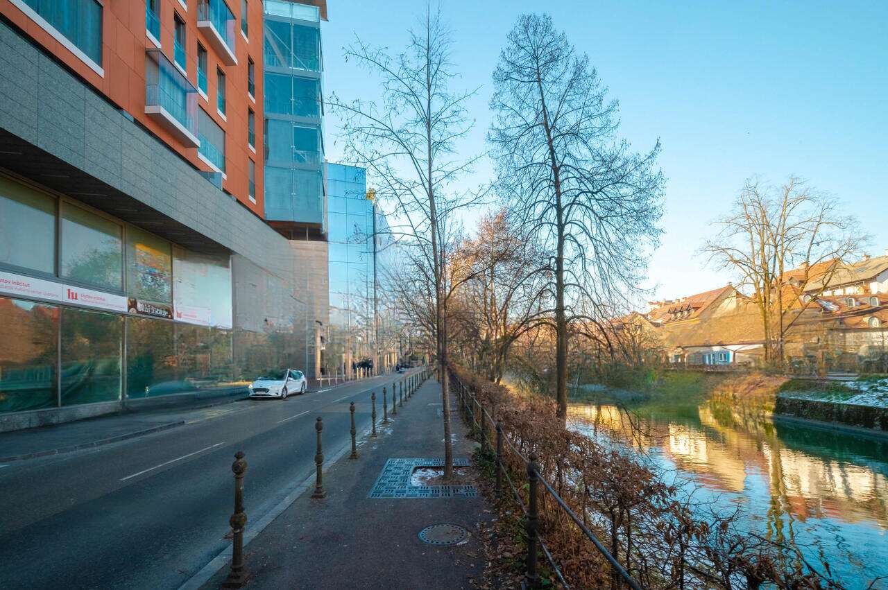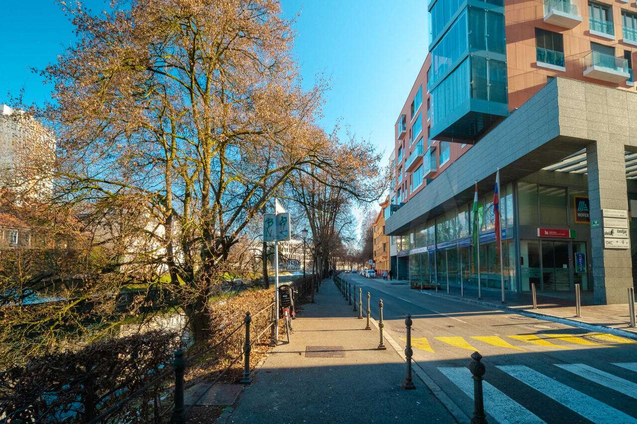 Расположение обеспечивает отличное транспортное сообщение: рядом находятся автобусные остановки, парковка с прямым выходом на лифте из гаража, а также банки, почта, рынок и многочисленные кафе и рестораны. Из окон открывается вид на реку Люблянку при северо-западной ориентации здания.