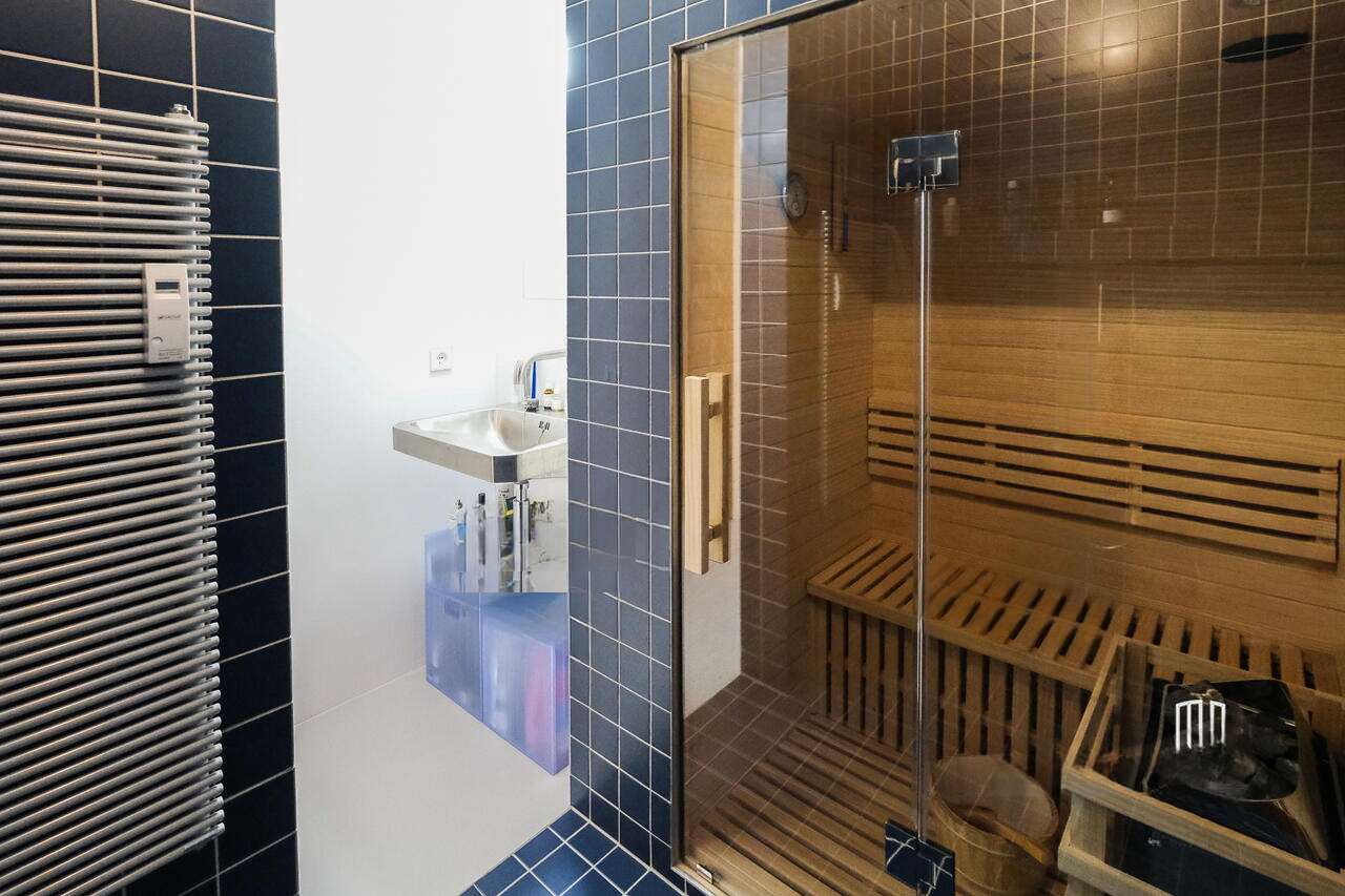Эта квартира отличается уникальной круговой планировкой, способствующей гармоничному и лёгкому освоению пространства. Планировка включает входной коридор, просторную и залитую светом гостиную, объединенную с кухней и столовой зоной, ванную комнату с сауной, отдельный санузел и уютную спальную комнату. Юго-западная ориентация квартиры обеспечивает естественное освещение на протяжении всего дня, создавая тёплую и уютную атмосферу. Реконструкция, завершённая в 2024 году, позволяет начать проживание без дополнительных затрат.