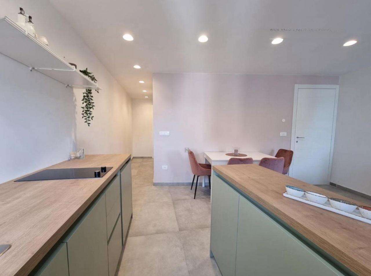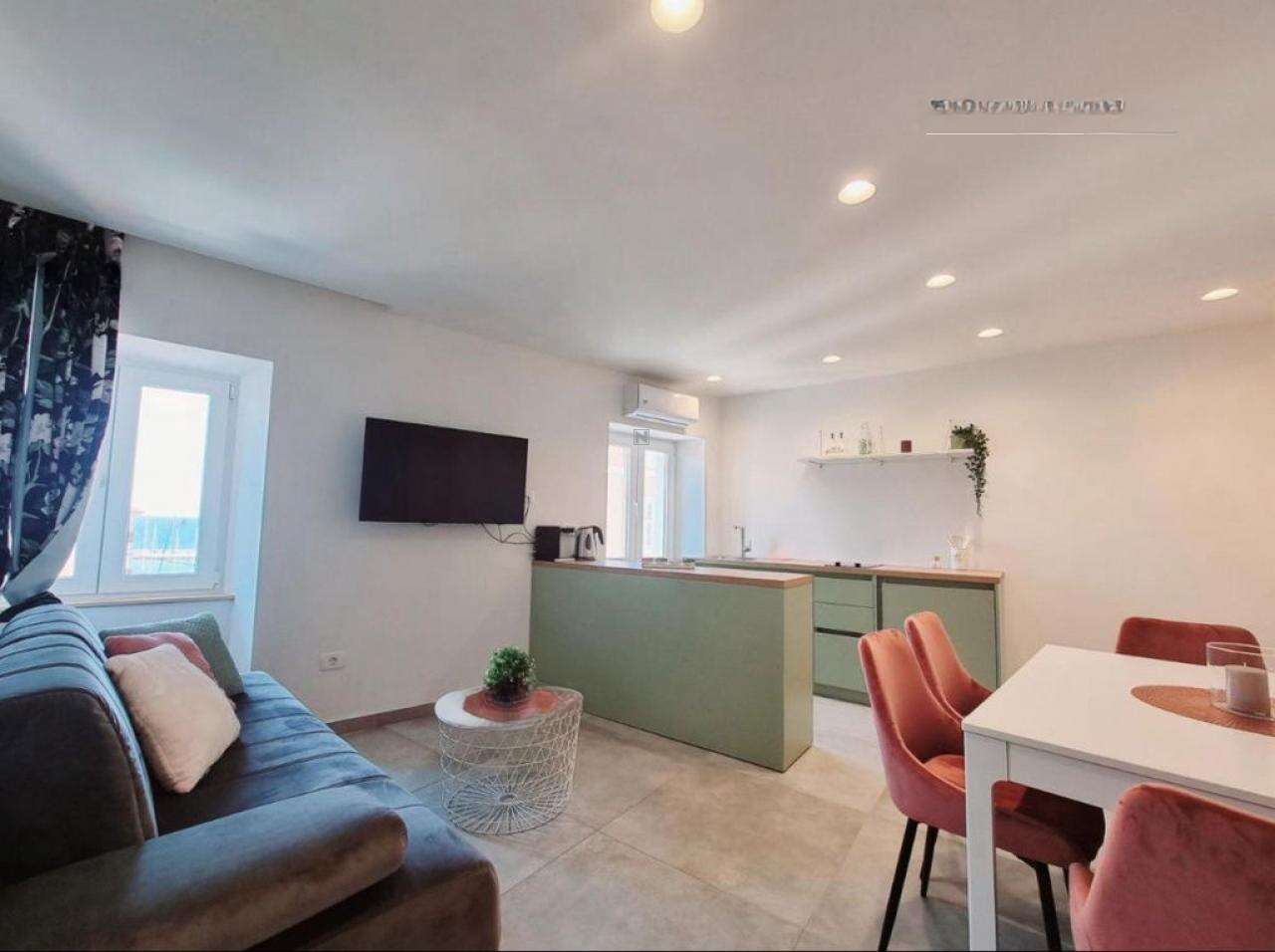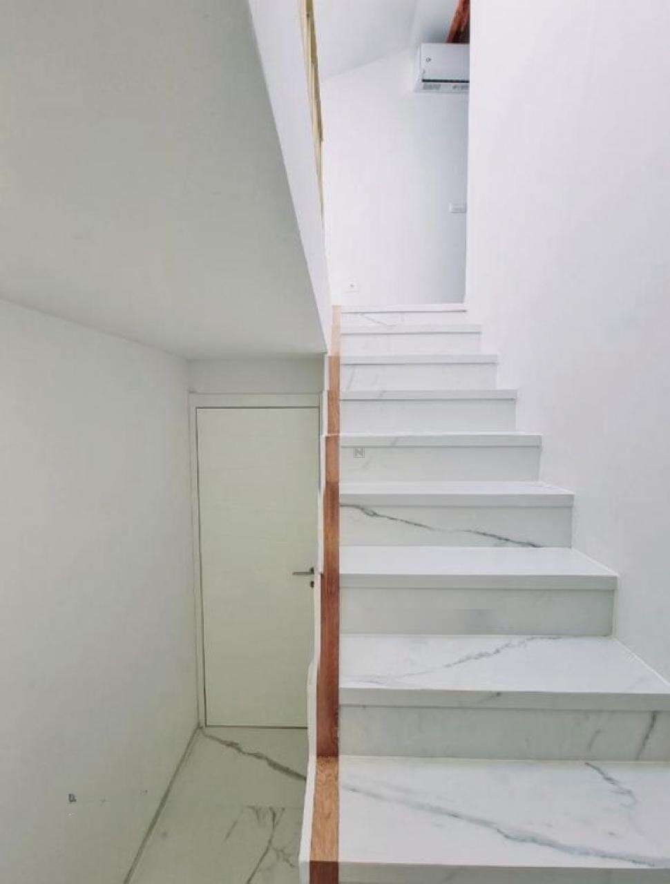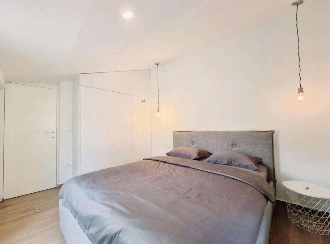 • На третьем этаже расположена первая квартира плoщадью 45 м², в которой просторная гостиная с кухней открывает восхитительный вид на Пиранскую гавань. Также здесь есть большая ванная и спальня с выходом на личную террасу.