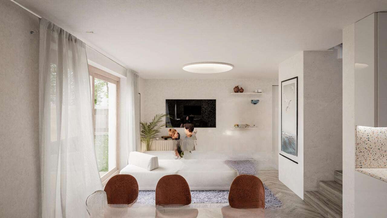 Предлагаем вашему вниманию уютное жилище с террасой в новом жилом комплексе на живописной окраине Шентвида, на северо-западе Любляны. Этот проект, разработанный архитектурным бюро COINHAB, ориентирован на потребности современных семей, благополучно сочетая гармоничность и современные стандарты застройки с учетом особенностей местности.