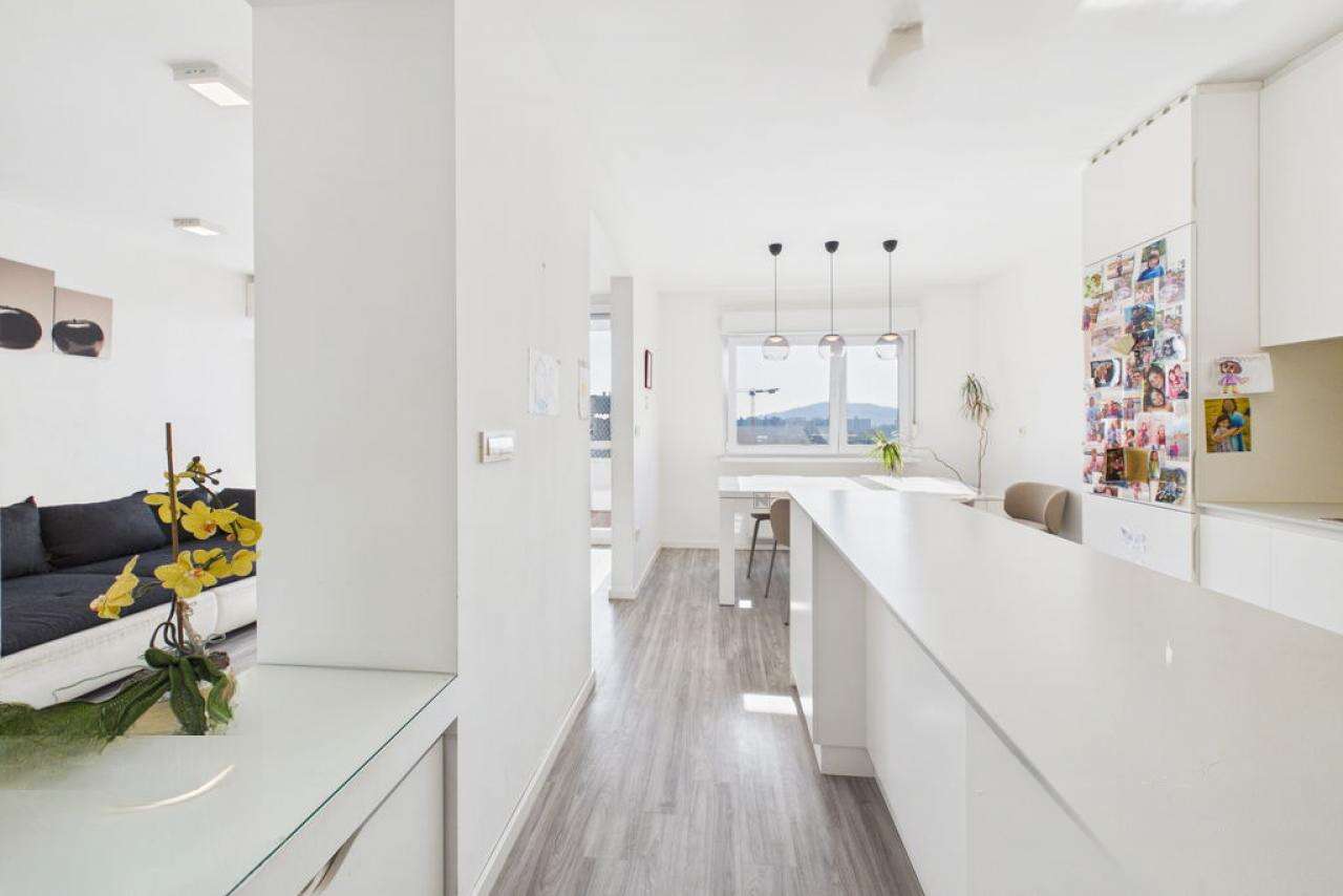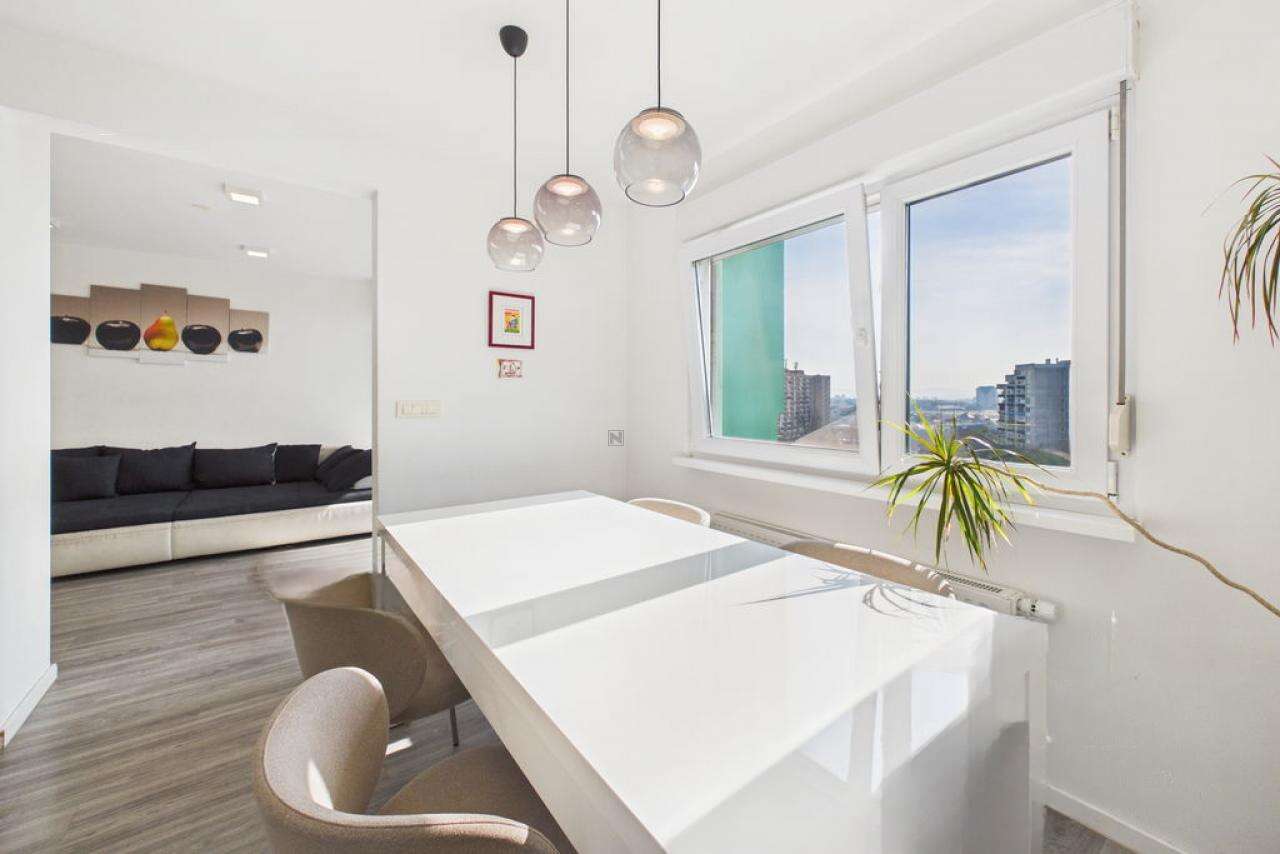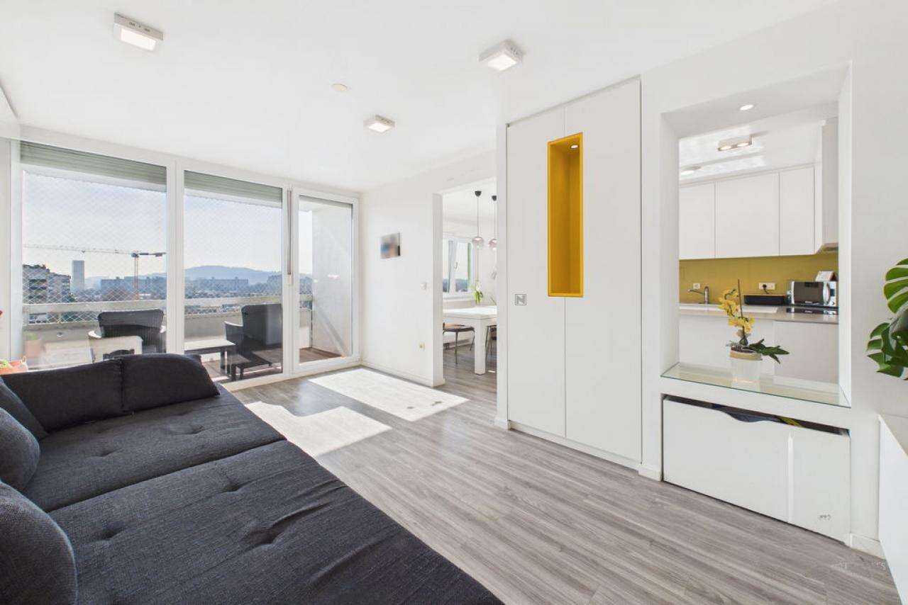 В живописном районе Любляны — Дравле, выставлена на продажу просторная четырехкомнатная квартира площадью 96,2 м². Жилище расположено на 8-м уровне высотного здания, откуда открывается великолепный вид и где солнце освещает помещения в течение всего дня.