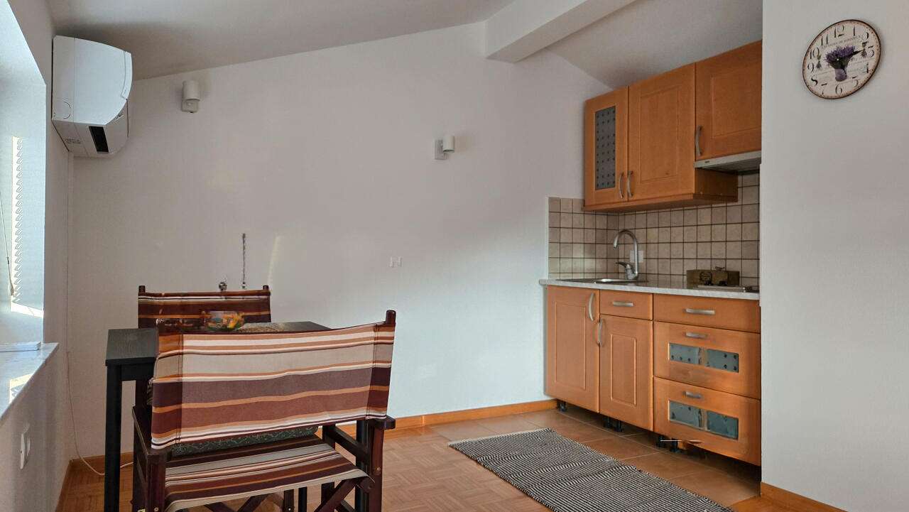 Мансарда превращена в небольшую квартиру с прихожей, жилой зоной, где имеется кухня и обеденная часть, выходом на балкон с видом на море, и в ней также есть ванная комната. Обеспечено центральное электрическое отопление (радиаторы) и кондиционер.
