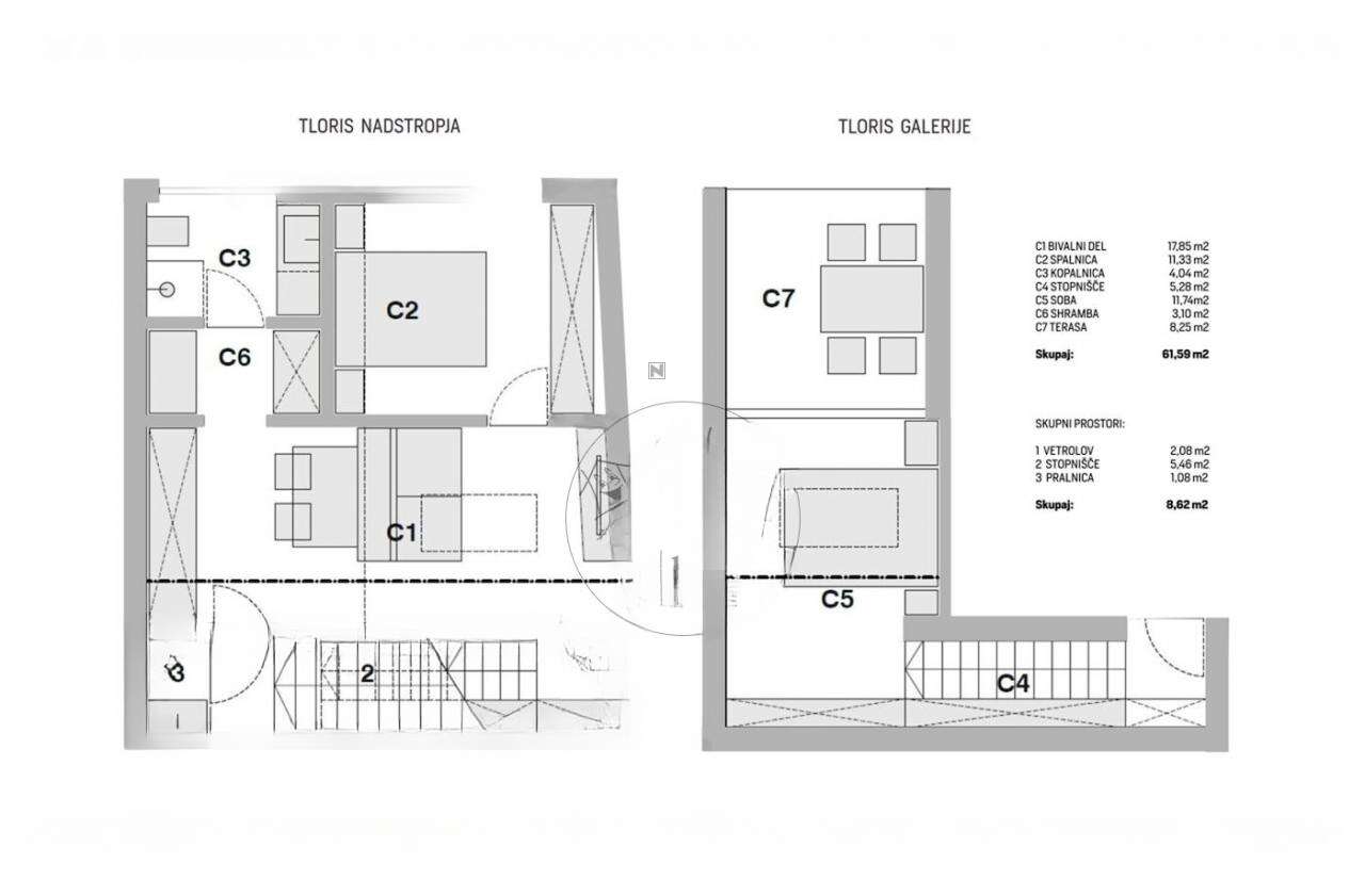 Жильё полностью оборудовано: двухэтажная планировка обеспечивает больше места и функциональности. Благодаря встроенной системе напольного отопления и тепловому насосу, достигается высокая энергетическая эффективность (энергетический класс B1), что подчеркивает экономичность и экологичность.
