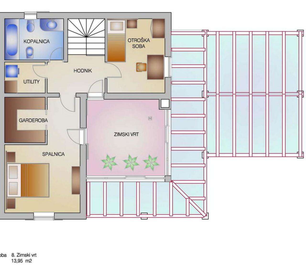 Представляем вашему вниманию замечательный дом с террасой, расположенный в живописном уголке Хрватини, недалеко от школы и всего в нескольких шагах от границы с Италией. Построенный в 2016 году, он предлагает 144,30 м² комфортного жилья на участке площадью 296 м². Это идеальный вариант для жизни с семьёй благодаря прекрасному расположению и продуманной планировке.