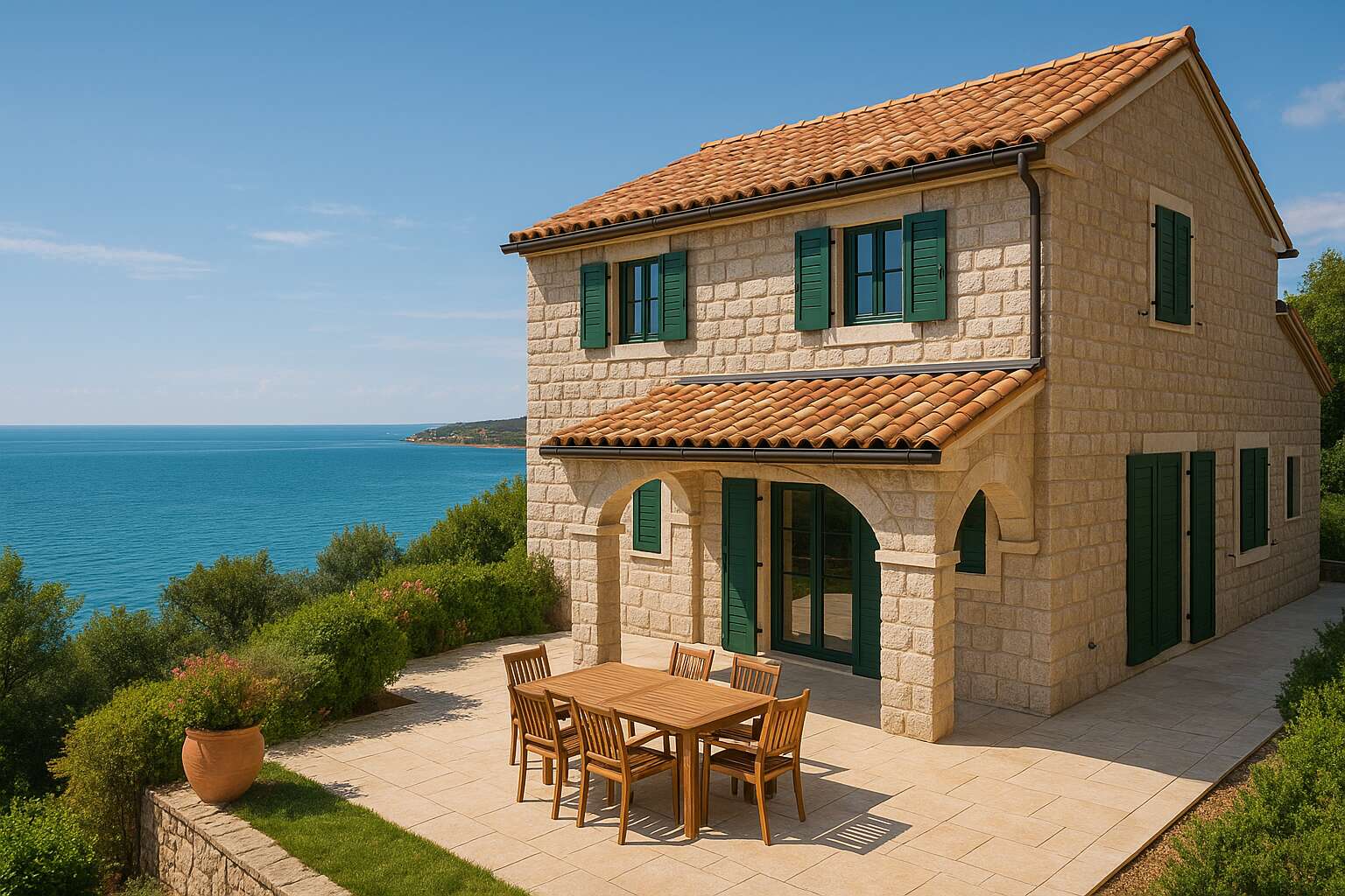 Собственный сад, гараж и дополнительная парковка на территории значительно упрощают жизнь. Отопление предоставляется радиаторами, есть также возможность кондиционирования помещений. Дом полностью меблирован и готов для немедленного заселения. Класс энергоэффективности – A1.