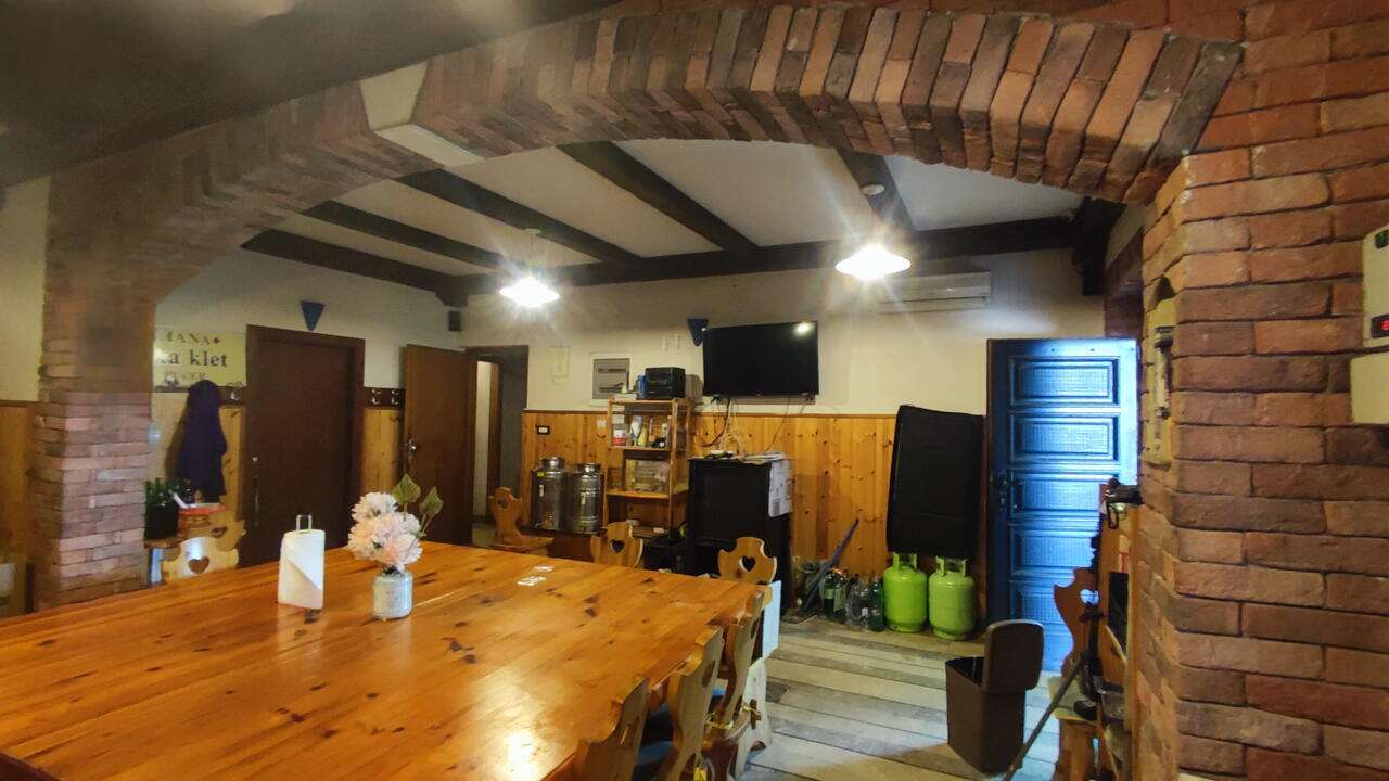 - На первом этаже: уютные апартаменты с двумя комнатами, в составе которых кухня, столовая, просторная спальня, гостиная и ванная. Здесь же есть общая зона (кантина) с камином, подключенная к винному погребу и складскому помещению и имеющая отдельный вход.