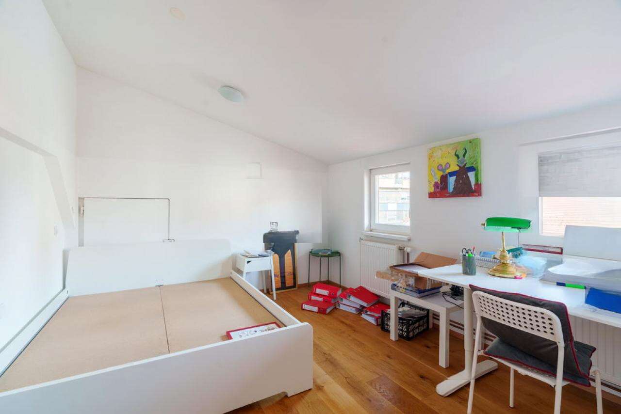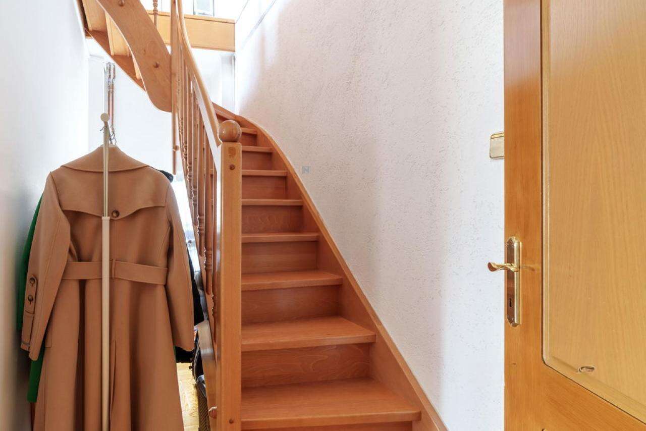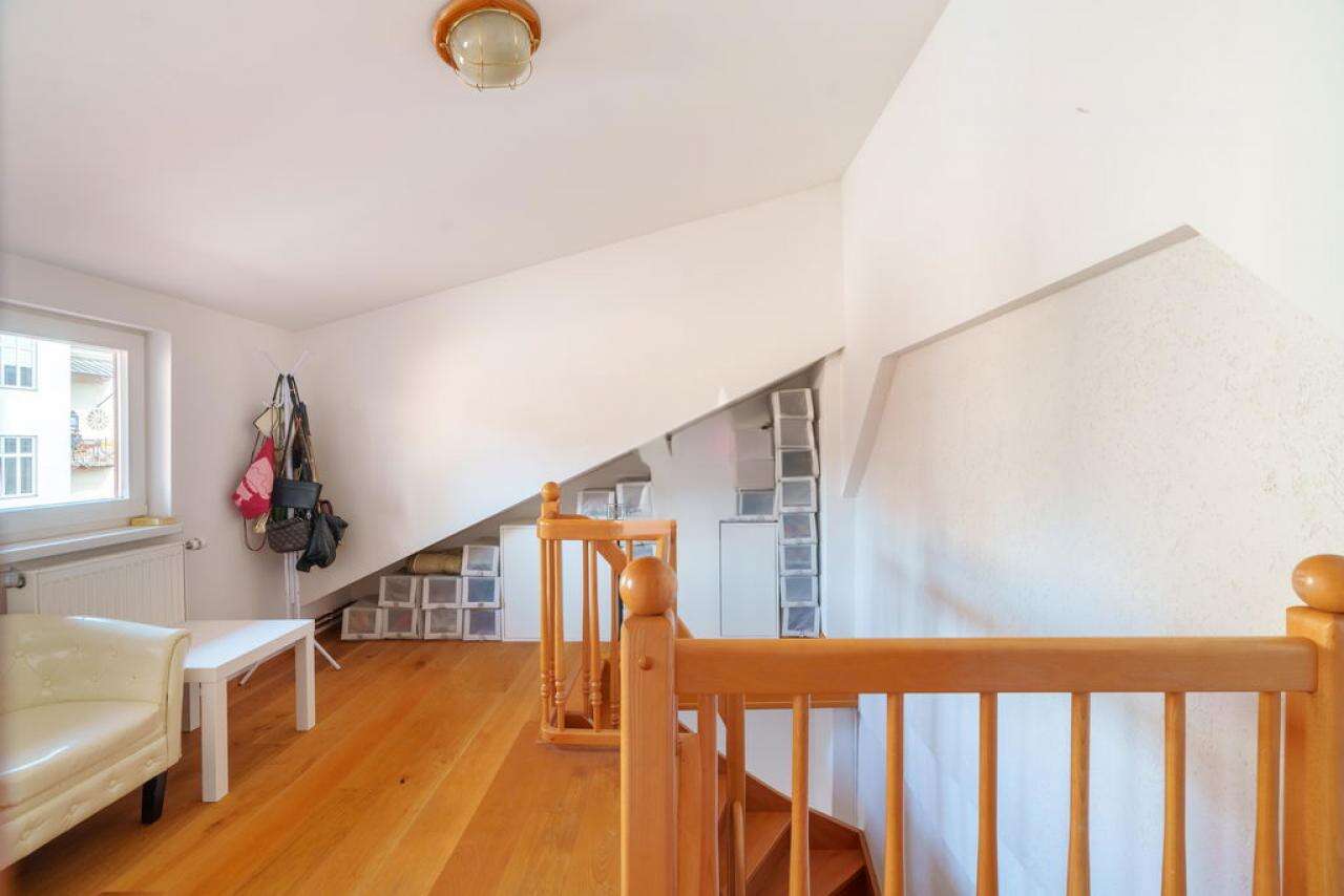 Квартира привлекает сохранением исторической привлекательности благодаря высоким потолкам и изящной лестнице. Главными достоинствами являются уют, обеспеченный продуманной планировкой и открытой галереей, а также живописные виды на город и Альпы.