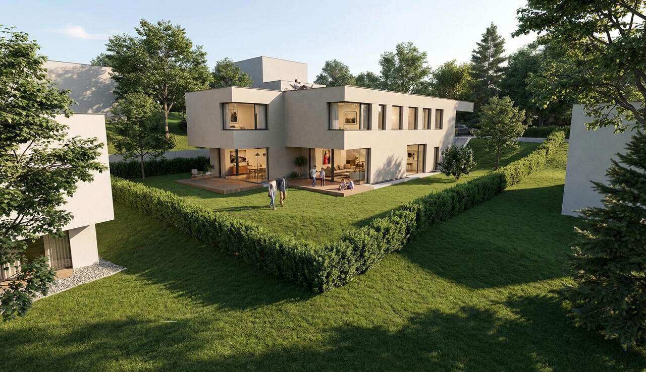 В живописном и северном уголке Любляны, в районе Средние Гамельне, предлагается полудом в стильной новостройке площадью 190,3 м², находящийся на участке размером 359,9 м². Этот дом, окружённый зеленью и лесом, гарантирует высокий уровень уединения и безопасности. Проект идеально подойдет как для семей, так и для людей, которые ценят спокойствие в сочетании с легким доступом к городской жизни.