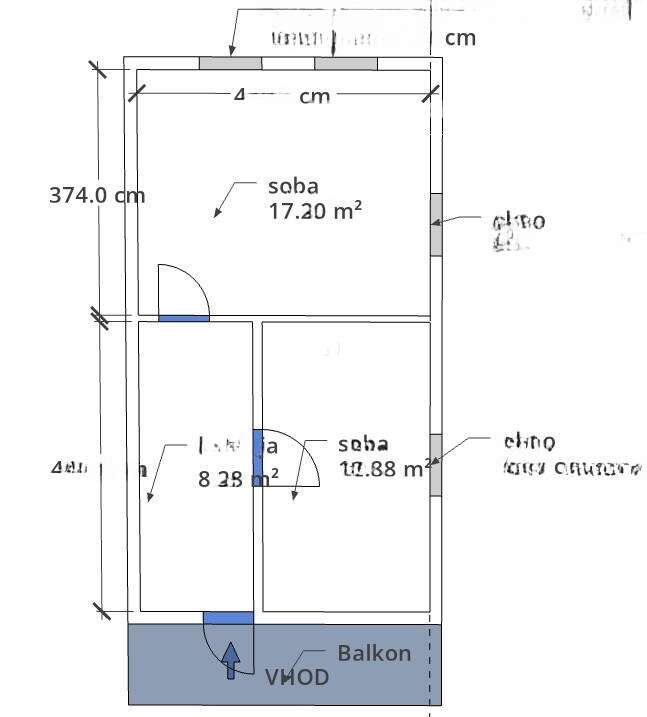 В квартире находятся просторная гостиная, спальня и кухня, ранее выполнявшая функцию коридора. Нуждаются в обновлении ванная комната и туалет: душевая кабина установлена на кухне, а туалет расположен в общем коридоре. Высокие потолки в 3,37 м и окна размерами 175 см наполняют квартиру естественным светом, создавая уютную обстановку. Окна были заменены в 2010 году.