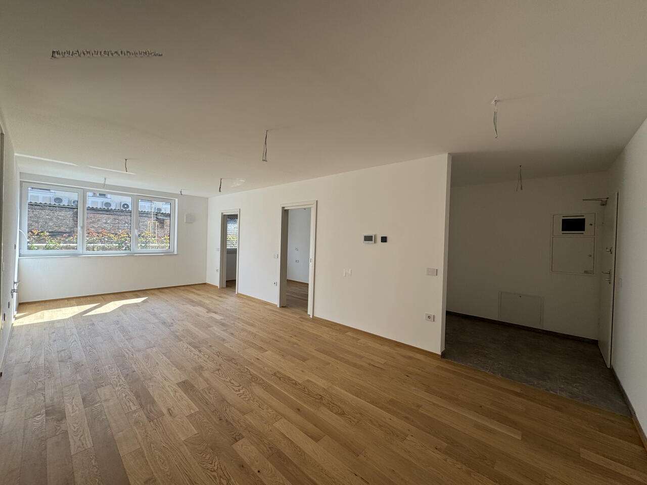 Территория комплекса обустроена двумя детскими игровыми площадками и удобными дорожками для подъезда к домам. Для жильцов предусмотрены личное парковочное место в гараже, помещения для хранения велосипедов и кладовая. Здание оснащено современными системами контроля доступа и вентиляцией с рекуперацией тепла. В квартире предусмотрено центральное отопление с теплыми полами, возможность установки кондиционера и подключение к системе "умный дом", что обеспечивает простой контроль за температурой, освещением и затенением.