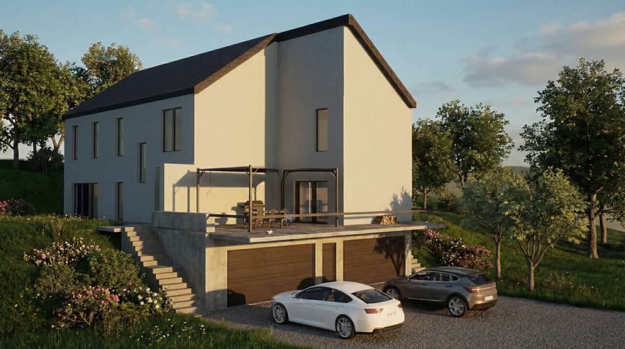 У каждой жилой единицы предусмотрена собственная зелёная зона вместе с возможностью дополнительной парковки для двух автомобилей перед гаражом. Строительство уже идет полным ходом, и объект будет готов к передаче в пользование к концу сентября 2026 года, при этом используются материалы высшего качества.