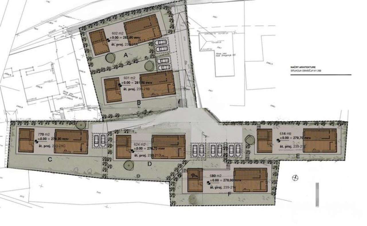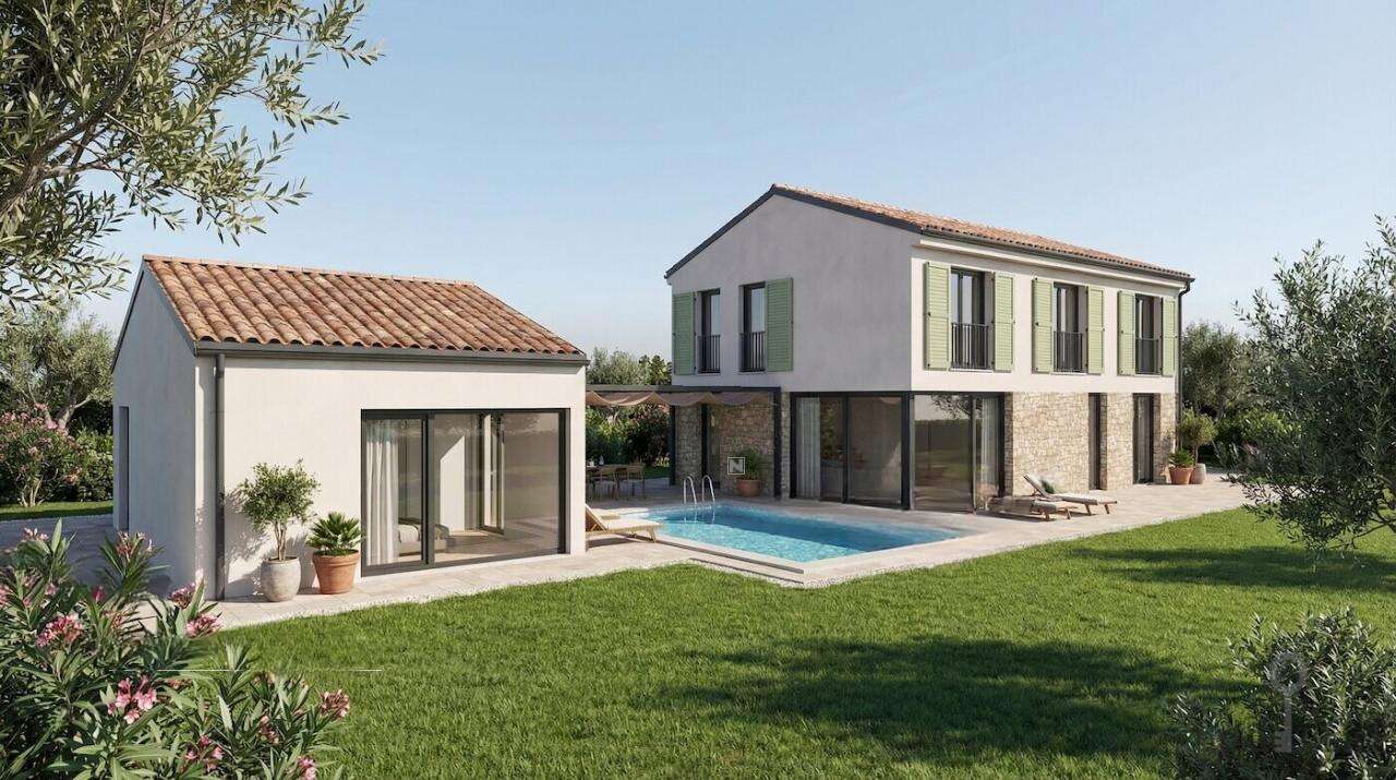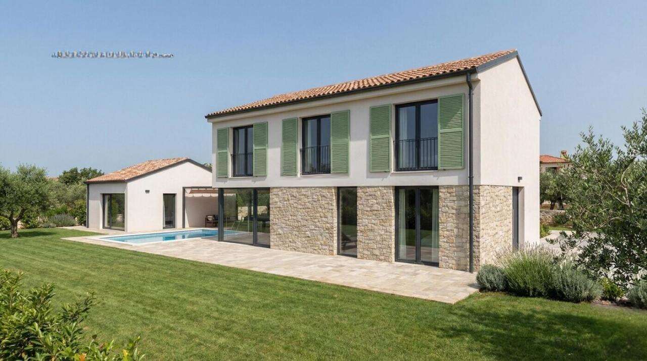 На живописной юге словенской Истрии, в деревне Новая деревня над Драгоньей, начат уникальный проект из пяти автономных домов, возведённых в 2026 году на участке размером 615 м². Эти современные здания удачно вписывают новаторский дизайн с традиционной истарской архитектурой.