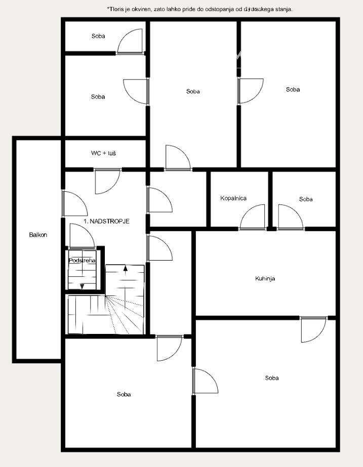Дом был построен в 1910 году, а его крыша заменена в 2016 году. Для создания условий комфортного проживания необходимо провести обновления. На участке площадью 757 м² здание предлагает 135 м² жилой площади на первом этаже и 145 м² на втором этаже. Рядом находится дополнительное хозяйственное строение, включающее сенницу, подвал и хлев.