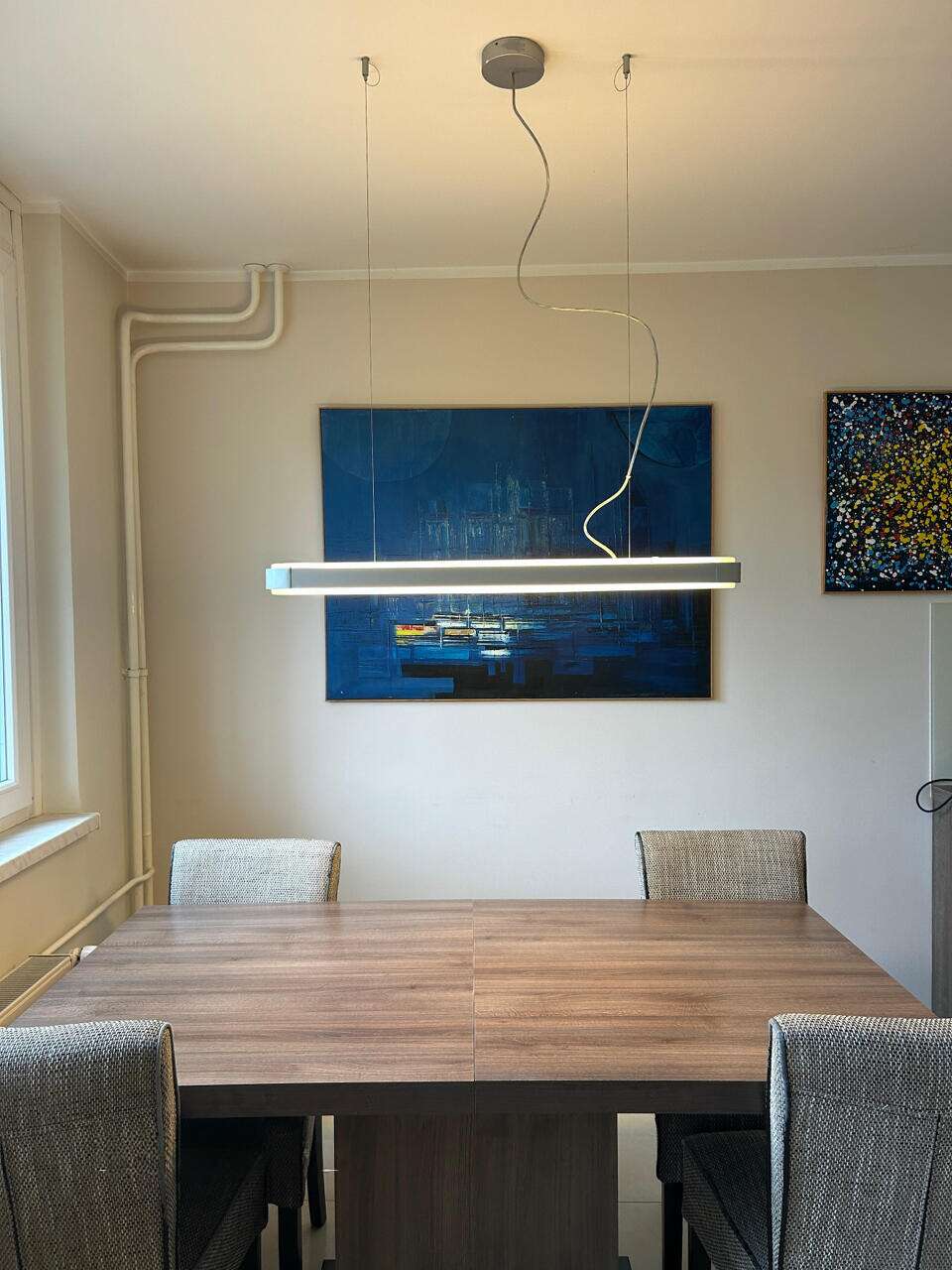Множество естественного света и соединение кухни, столовой и гостиной формируют атмосферу открытости и домашнего уюта. Для большего комфорта в 2024 году были установлены москитные сетки и внешние жалюзи. Квартира готова для немедленного проживания и доступна для продажи.