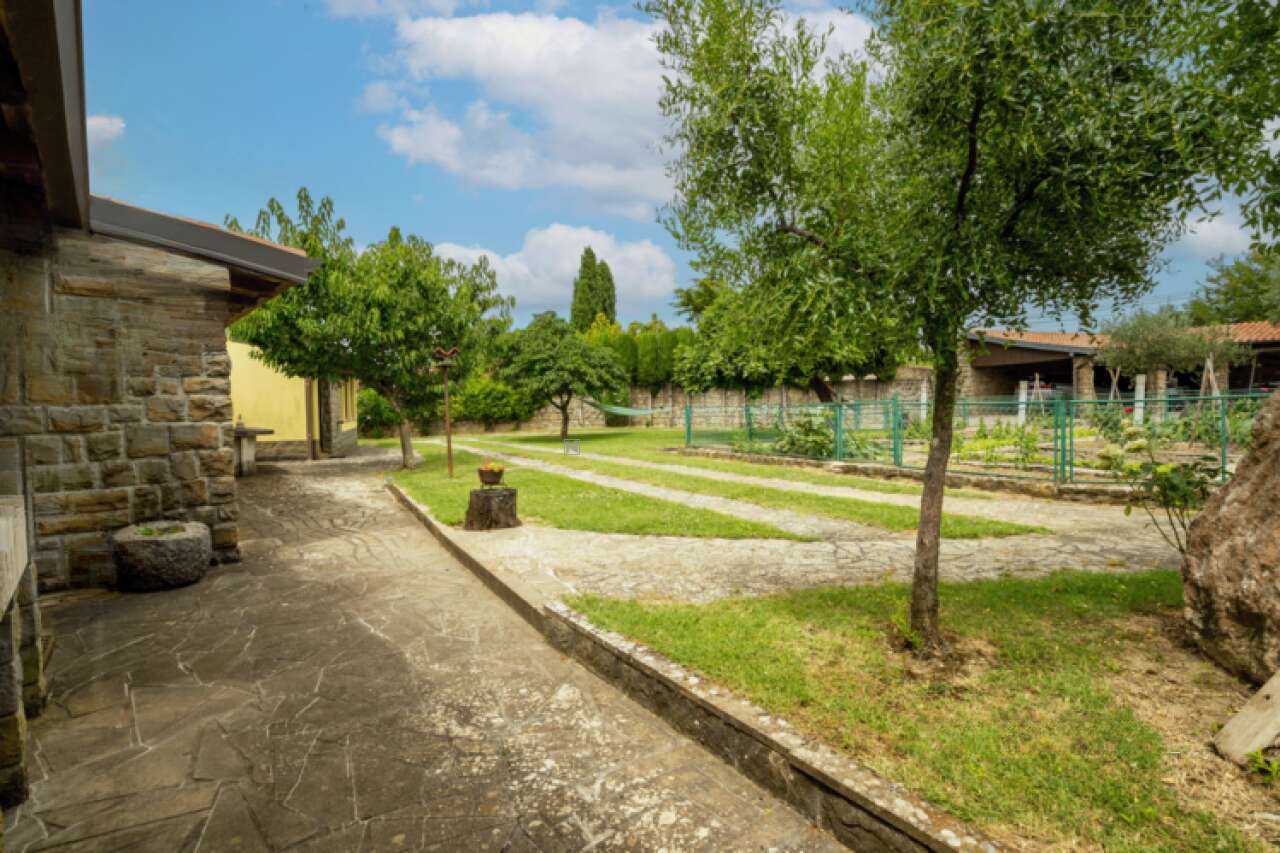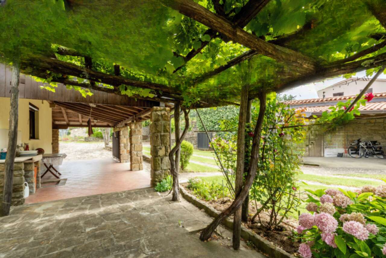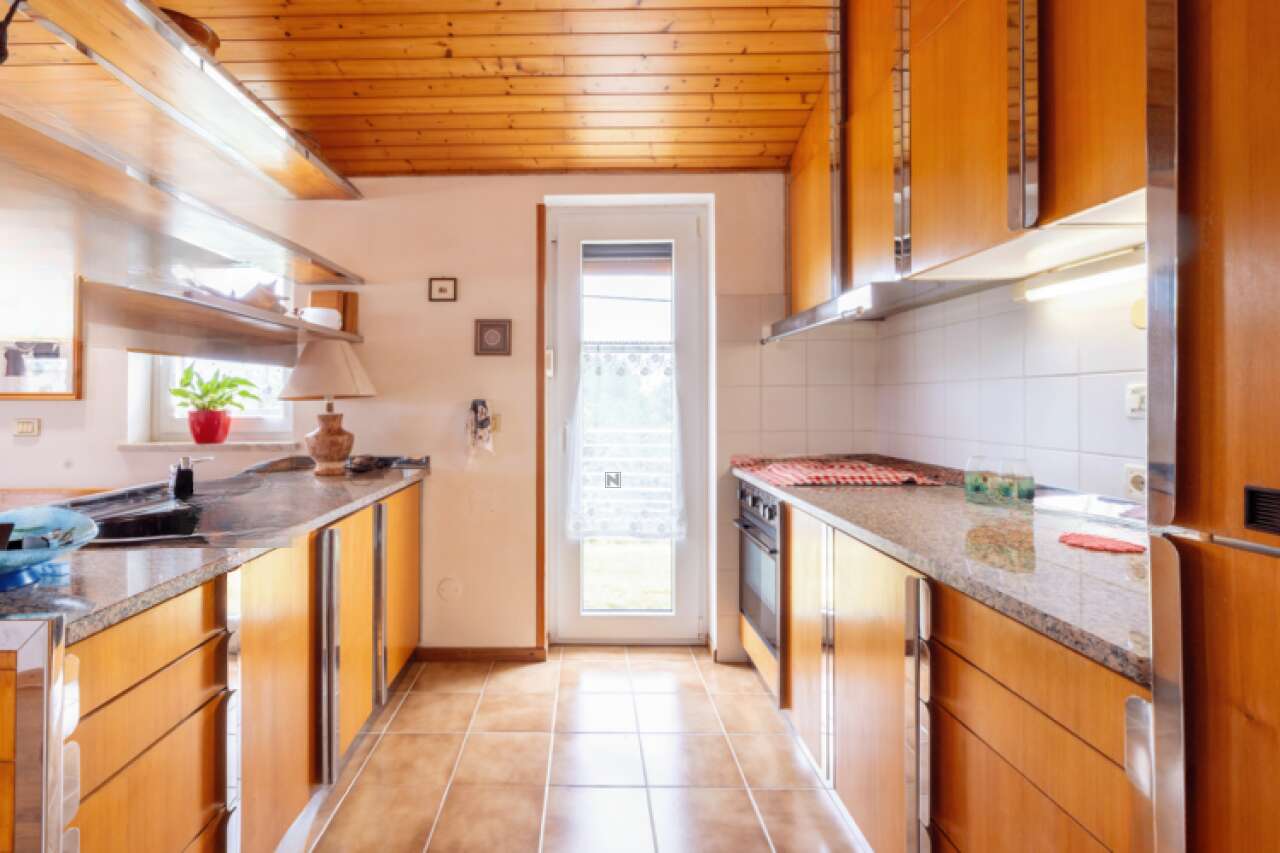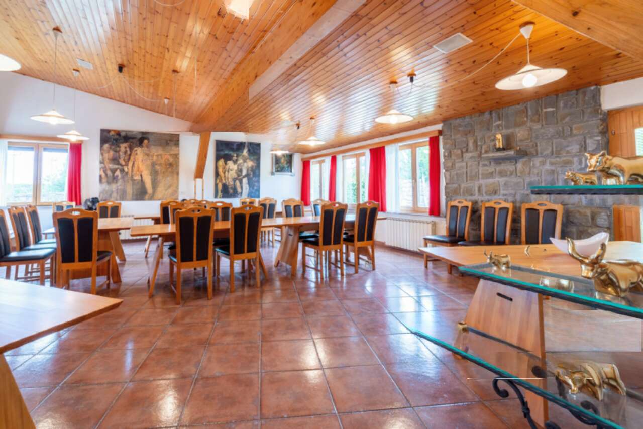 На продажу выставлен просторный одноэтажный дом, расположенный в живописном месте рядом с деревней Помян. Это здание возведено в 1987 году и прошло полную реставрацию в 2020 году. Участок земли размером 2321 м² окружен каменной стеной и предлагает уникальные возможности для использования, в том числе отдельный коммерческий объект, которым раньше был ресторан.
