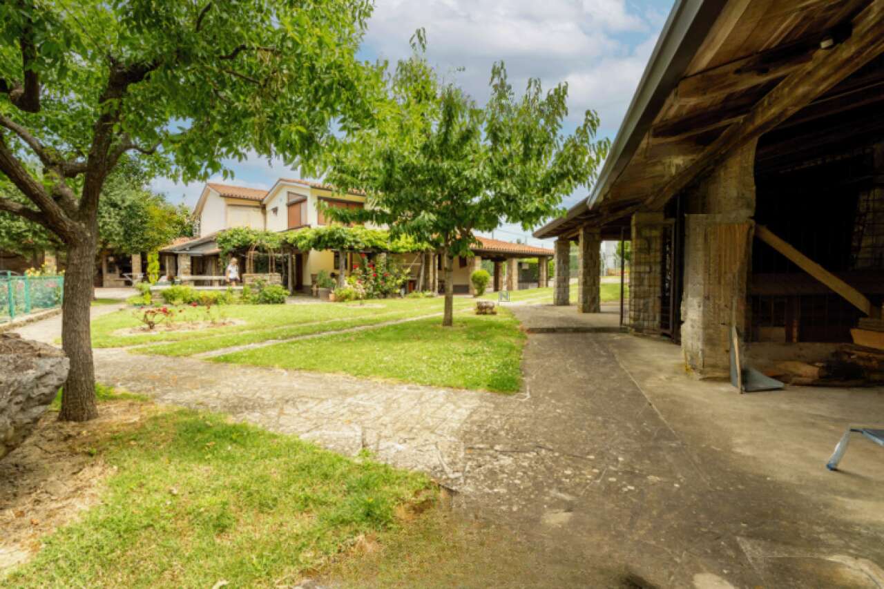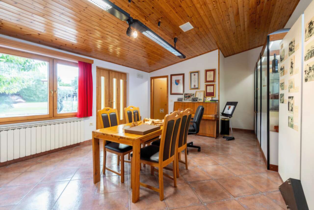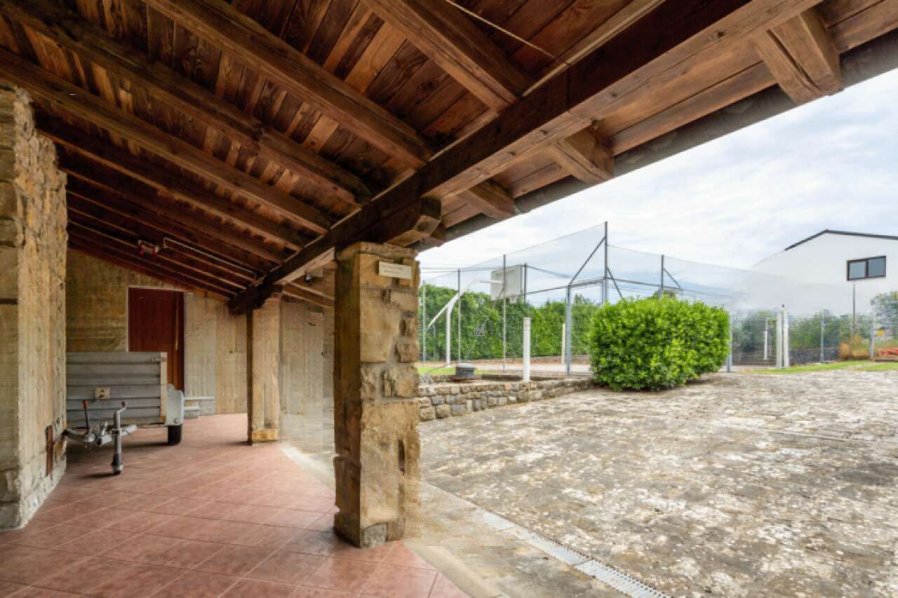 Дом оборудован системами газового и электрического отопления, а также кондиционирования, что гарантирует комфортные условия проживания круглый год. Полностью готовая к заселению, недвижимость предлагает обширные склады, мастерскую, котельную и три навеса общей площадью 112 м², которые подойдут для парковки или обустройства летней кухни.