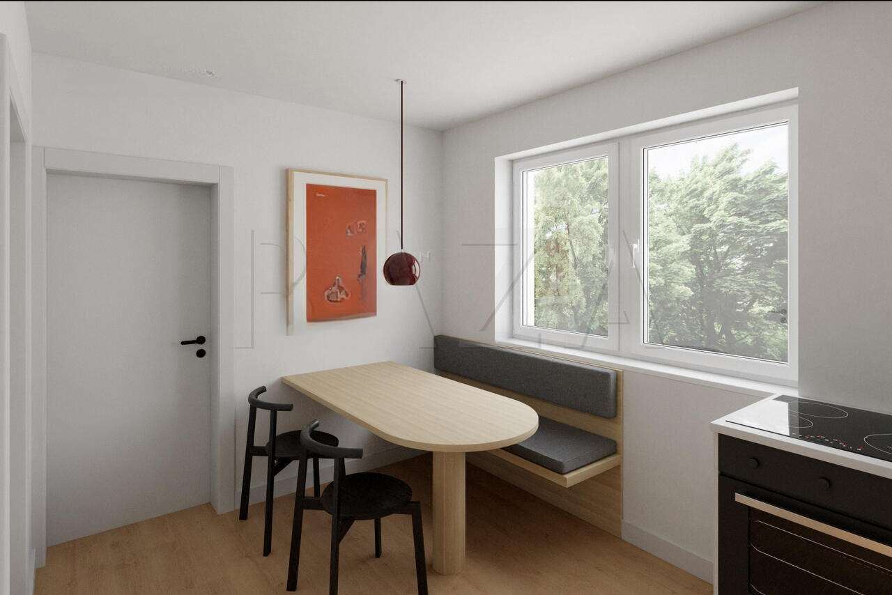 В квартире предусмотрена удобная планировка: прихожая, кухня с обеденной зоной, уютная ванная комната и просторная жилая комната, которую можно обустроить как для отдыха, так и для сна. В распоряжении жильцов – вместительная кладовая в подвале размером 5,4 м² и доступ к общим зонам, включая место для велосипедов и сушилку. Во дворе дома обустроены зеленые участки для общего пользования, а также возможность создать собственный огород для овощей или декоративных растений.