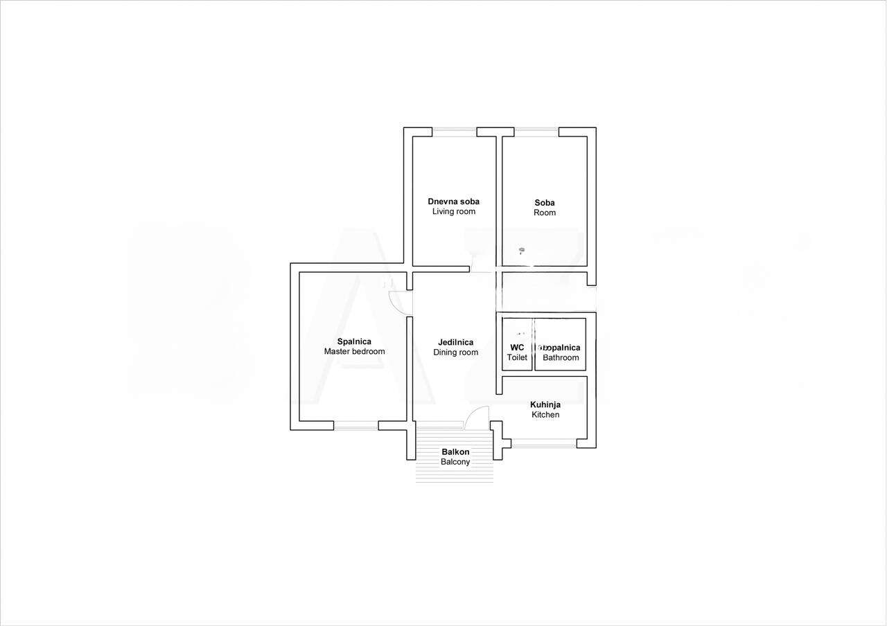 Просторная трёхкомнатная квартира расположена в районе Бежиград, Любляна. Построенная в 1976 году, она была частично обновлена в 2007 году и обеспечивает комфортное проживание на третьем из четырёх этажей. Общая площадь составляет 79 м²: из них 73,8 м² — это жилая зона, 3,7 м² занимает застекленный балкон, и 1,5 м² отведено под кладовую. Стоимость объекта составляет 349 000 EUR.