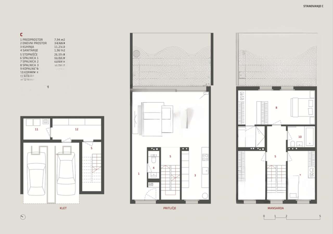 ✏️ Площадь жилого помещения составляет 170,3 м², из которых 145 м² отведены под жилые зоны. Дом возведён на участке площадью 33,25 м² и состоит из подвала, первого этажа и мансарды. Внутри предусмотрены три спальни, включая главную комнату с гардеробной и личным санузлом. Дополнительно, две ванные комнаты создадут комфорт для всей семьи и гостей. Просторная гостиная площадью 34,18 м², совмещенная с кухней в 10,91 м², становится центральным местом для семейных встреч. Для личного отдыха оборудован атриум на 33,29 м².