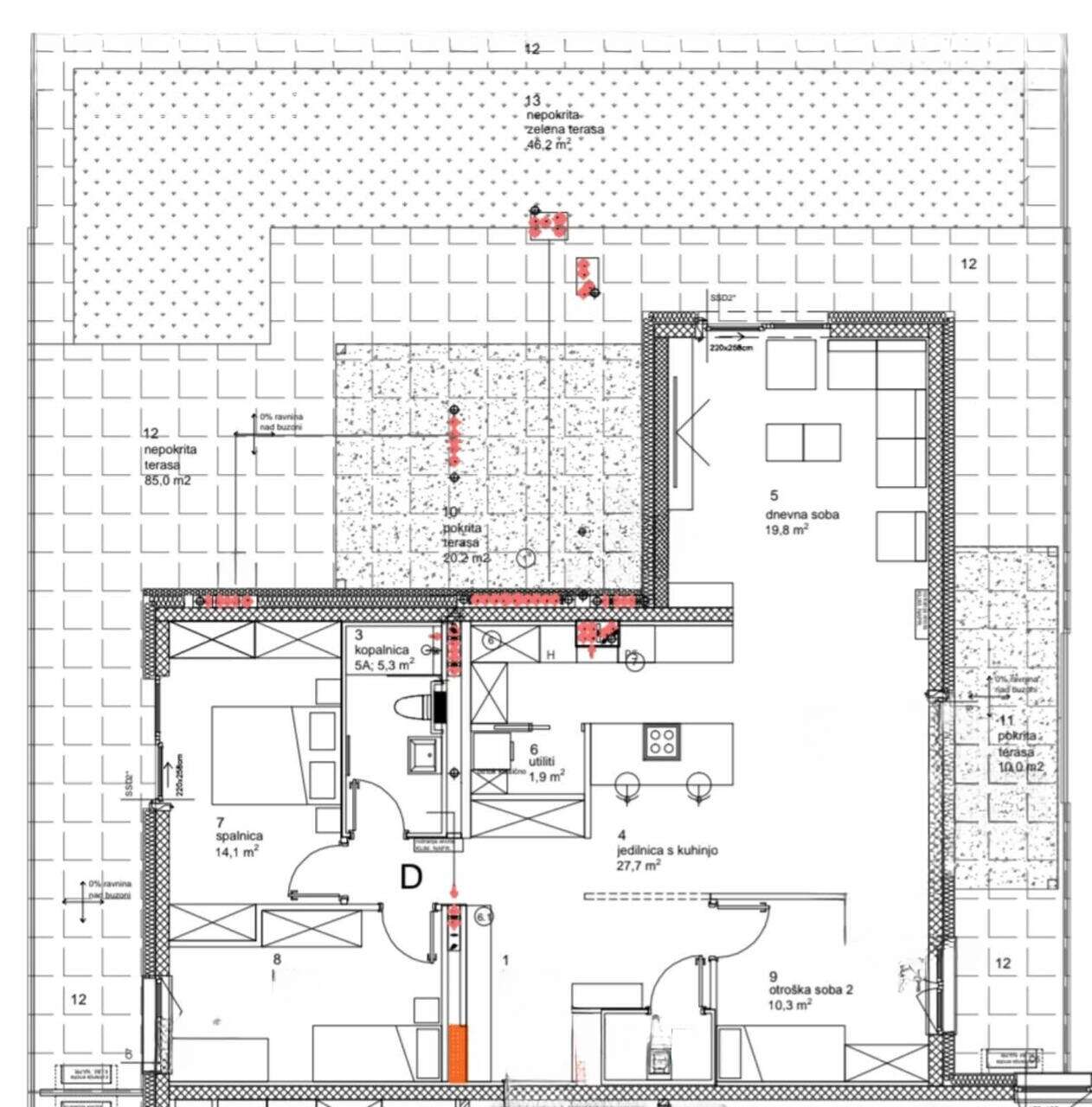 На динамичной улице Йелинчичева, в элитном районе близ площади Шаратистской в Любляне, находится современный пентхаус в новом жилом комплексе из четырех комнат. Его общая площадь составляет 282,9 м² и включает в себя просторную террасу, а также два собственных парковочных места в подземной автостоянке.