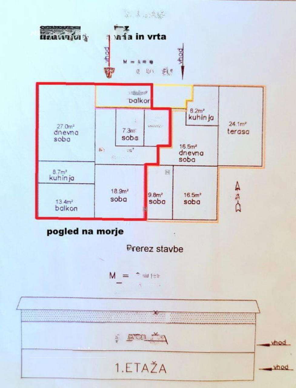 Представляем вашему вниманию просторный пентхаус с тремя комнатами, который находится на удивительно тихой и живописной территории над Порторожем, между Шентьянами и Белым крестом. Это уникальная возможность приобрести недвижимость, сочетающую в себе комфорт квартиры и очарование дома, благодаря независимому входу и большому частному саду. Из окон открываются захватывающие виды на Пиранский залив, простирающийся до Савудрии, добавляя уют вашему образу жизни.