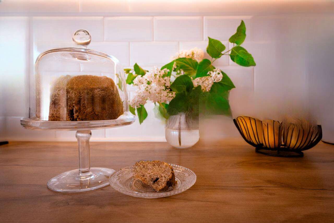 Квартира обставлена мебелью и оборудована современной кухней с техникой, включая посудомоечную машину. Также имеются шкафы, полки, кровать и телевизор. Для создания комфортного климата круглый год предусмотрено отопление с помощью климатического устройства и дровяной печи.
